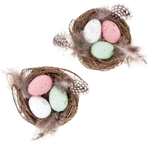 Gniazdka dekoracyjne jajka i piórka 8cm 2szt - Dalprint dpCraft