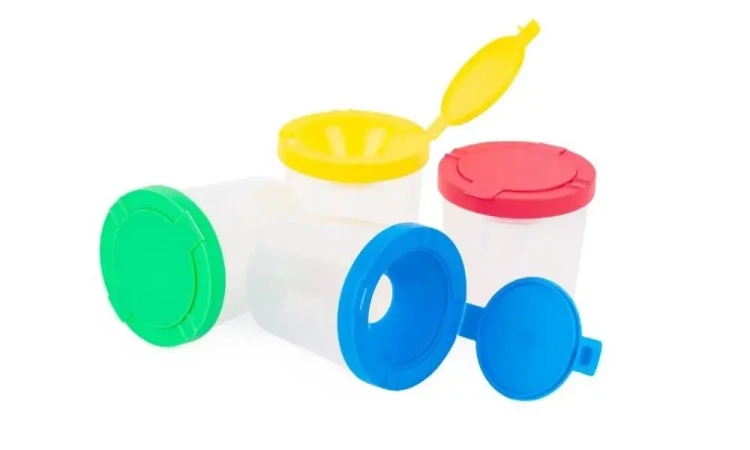 Ten plastikowy kubek posiada dwa wygodne wgłębienia, które umożliwiają wygodne układanie pędzli. Zakręcane wieczko zapewnia, że po przewróceniu woda nie wypłynie. Idealny wymiary: wysokość 7,5 cm, średnica 5,5 cm.