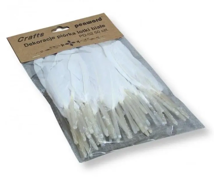Te delikatne białe piórka lotki o długości od 10 do 15 mm są idealnym dodatkiem do wszelkiego rodzaju projektów rękodzielniczych. W zestawie znajduje się 50 sztuk, co pozwala na tworzenie wyjątkowych ozdób i dekoracji. Doskonale sprawdzą się w pracach artystycznych, dekoracjach świątecznych czy biżuterii.
