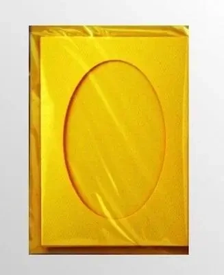 Oferujemy zestaw 5 kopert C-6 oraz 5 kart passepartout z owalnym wycięciem. Wszystkie elementy są w kolorze żółtym, nadającym elegancki wygląd każdemu projektowi. Karty passepartout wykonane są z wysokiej jakości, nieblaknącego bristolu o gramaturze 220, pochodzącego z niemieckiej produkcji.