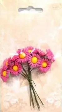 Kwiatki papierowe w kolorze różowym. Opakowanie zawiera 10 sztuk eleganckich margerytek. Produkt jest zapakowany w estetyczne opakowanie z eurodziurką, co ułatwia jego przechowywanie i eksponowanie. Kod towaru: K733-23