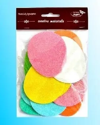 Jaja duże brokatowe w zestawie 16 sztuk. Zapakowane w opakowanie z eurozawieszką. Bogaty zestaw elementów z pianki. W skład wchodzą elementy w różnorodnych kolorach.