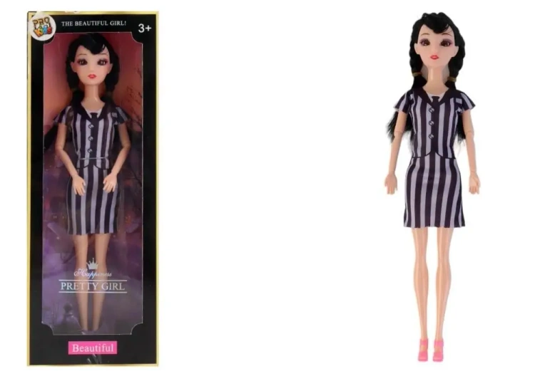 Lalka w stylu gotyckim emo to wyjątkowa zabawka dla dzieci w wieku 3 lat i starszych. Jest to lalka o wyrafinowanej estetyce, ubrana w długą, ciemną suknię ozdobioną wzorami przypominającymi klasyczne gotyckie motywy. Jej długie, czarne włosy są związane w dwie niskie kitki, co dodaje jej charakterystycznego stylu. Lalka ma delikatne rysy twarzy, które są podkreślone przez jej wyraziste makijaż. Na stopach nosi różowe, wysokie obuwie, które dodaje kontrastu do jej ciemnego stroju. Zabawka ta może inspirować do twórczej zabawy, stając się centralną postacią w wyimaginowanych historiach i przygodach. Jest to także doskonały wybór dla kolekcjonerów lalek, którzy szukają czegoś wyjątkowego do swojej kolekcji.