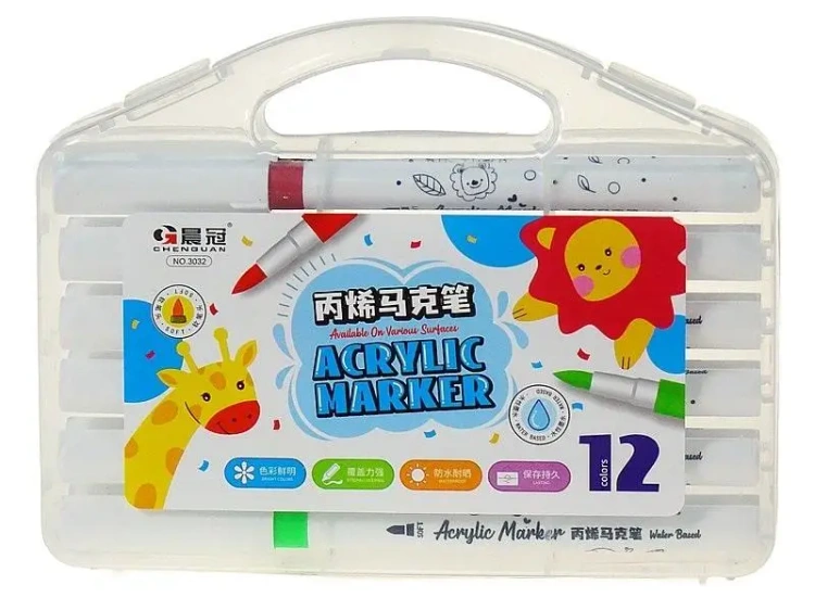 Flamastry akrylowe PVC - Zestaw 12 Kolorów