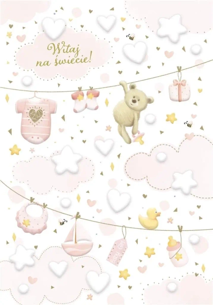 Kartka okolicznościowa na Narodziny - różowe Trend