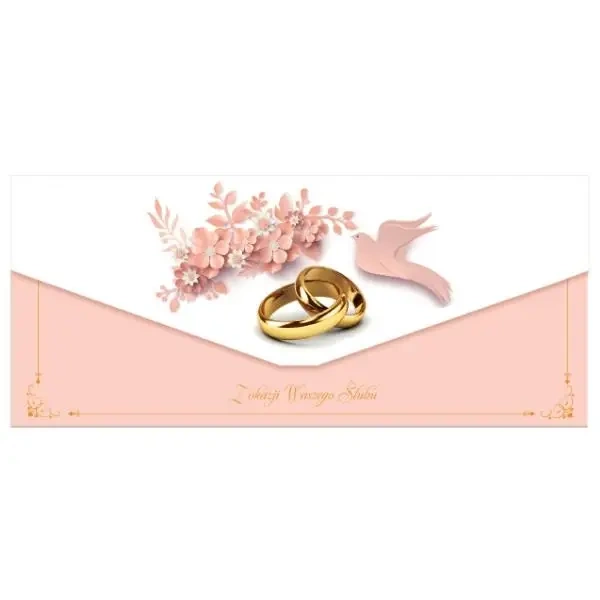 Ten karnet ślubny cechuje się przepięknymi złoceniami, które dodają mu elegancji. W środku znajdziesz przestrzeń na serdeczne życzenia oraz kieszonkę na pieniądze, co jest bardzo praktycznym rozwiązaniem. Dodatkowo, do karnetu załączona jest koperta, co ułatwia jego wręczenie.