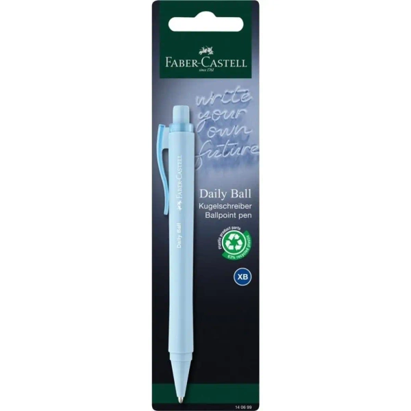 Długopis Daily XB od Faber-Castell dostępny jest w różnych kolorach: czarnym, różowym i błękitnym, pakowany w blistrze. Każdy kolor niezwykle przyciąga uwagę i sprawia, że codzienne pisanie staje się przyjemnością.