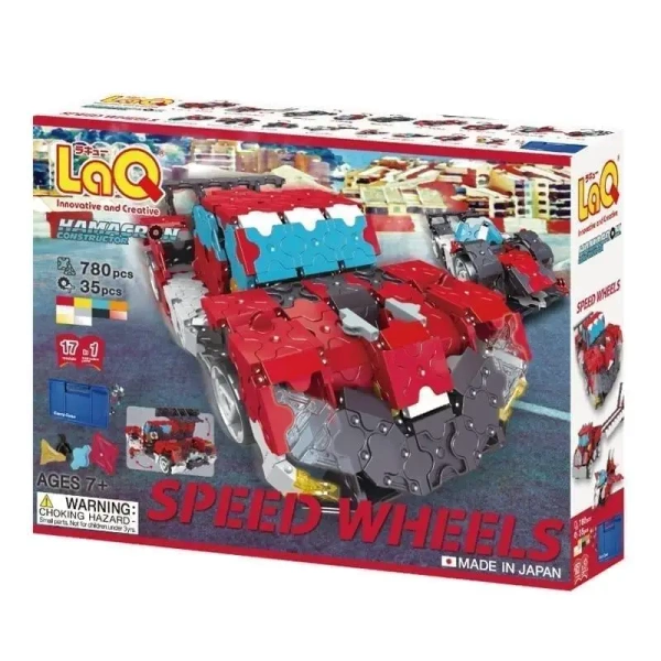 Odkryj świat kreatywnej zabawy z klockami edukacyjnymi Speed Wheels LaQ! Zestaw zawiera aż 17 schematów konstruowania, dzięki którym zbudujesz m.in. samochód wyścigowy, motocykl, czy samolot. Zabawka dostępna jest w 10 kolorach i składa się z 780 części, w tym 35 specjalnych elementów Hamacron. Wszystko zapakowane jest w wygodną plastikową walizkę do przechowywania. Produkt przeznaczony jest dla dzieci od 7 lat. Wykonane z najwyższą starannością MADE IN JAPAN.