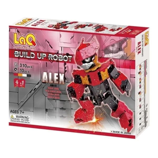 W zestawie znajdziesz 310 części oraz 10 specjalnych elementów Hamacron. Dodatkowo zawiera cztery schematy budowy: robota Alex, mini robota, psa oraz samochodu wyścigowego, a wszystko to w czterech kolorach.