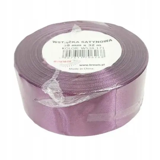 Oferujemy wstążkę satynową w eleganckim śliwkowym kolorze. Ma szerokość 38 milimetrów oraz długość 32 metrów. Idealna do różnorodnych zastosowań dekoracyjnych, w tym ozdabiania prezentów, tworzenia ozdób czy dekoracji ślubnych.