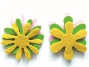W opakowaniu znajduje się 6 filcowych stokrotek w różnych kształtach. Dostępne kolory to żółty, zielony oraz jasnoróżowy, co daje wiele możliwości do twórczej aranżacji. Taki zestaw idealnie sprawdzi się w różnego rodzaju projektach dekoracyjnych.