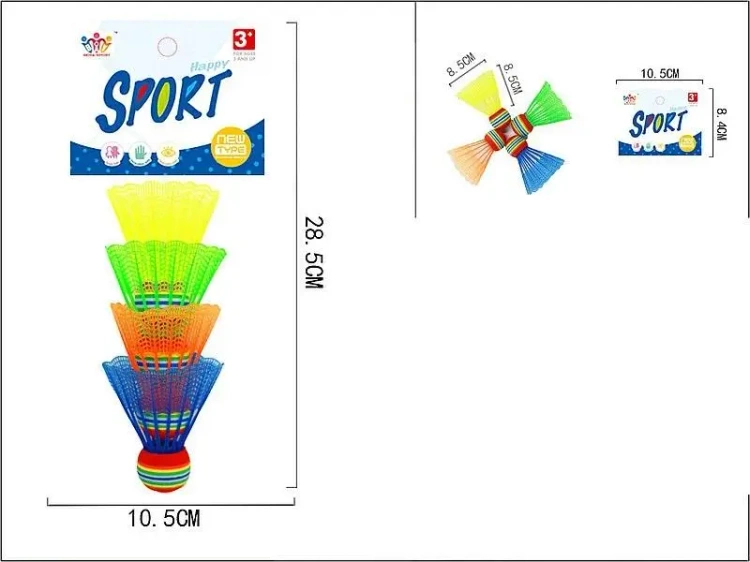 Przedstawiamy zestaw czterech plastikowych lotek do badmintona, idealny do rekreacyjnej gry na świeżym powietrzu. Każda lotka wyróżnia się żywymi kolorami, które łatwo zauważyć podczas gry.