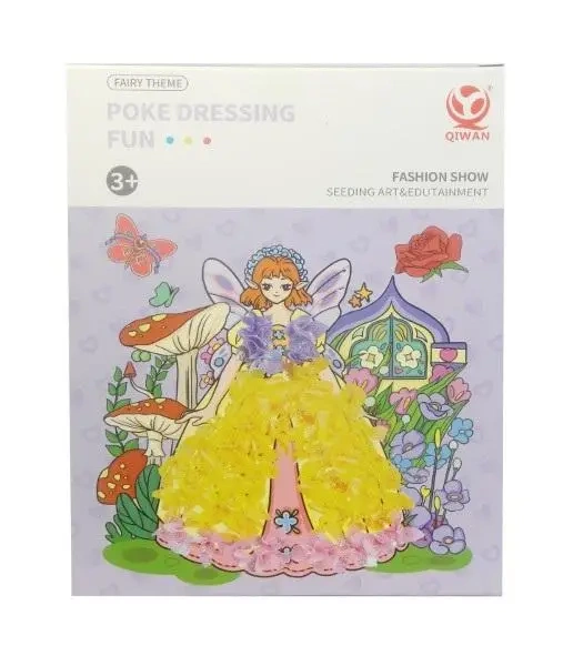 Kolorowe wizerunki elfów, którym można ozdobić sukienki za pomocą dołączonych, kolorowych materiałów. Gra zapakowana jest w solidne kartonowe opakowanie. Podane wymiary odnoszą się do wielkości opakowania. Produkt przeznaczony dla dzieci w wieku od 3 lat.