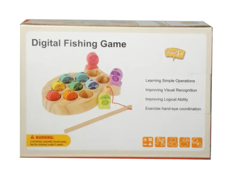 Klasyczna gra rybki w nowoczesnej formie. Kolorowe drewniane rybki z wędką na magnes. W zestawie znajduje się 10 rybek i 1 drewniana wędka. Całość spakowana w kartonowe opakowanie. Podane wymiary są wymiarami opakowania.