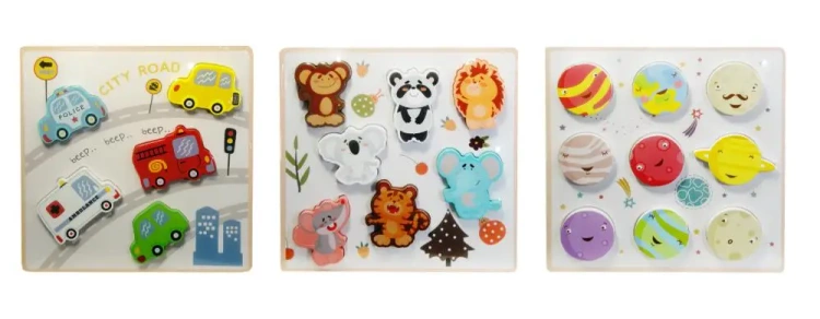 Drewniane puzzle dla dzieci ze zwierzętami, planetami, pojazdami. Pomogą rozwinąć u najmłodszych dzieci logiczne myślenie. Produkt występuje w kilku wersjach, wybierany losowo. Cena dotyczy jednej sztuki. Produkt przeznaczony dla dzieci 24 miesiąca życia.