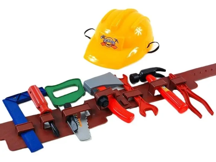 Prezentujemy kompletny zestaw narzędzi w siatce, wyposażony w kask i pas, doskonały dla małych majsterkowiczów. Zestaw ma wymiary 63x18 cm i jest wygodnie zapakowany w poręczną siatkę, co ułatwia jego przenoszenie i przechowywanie.