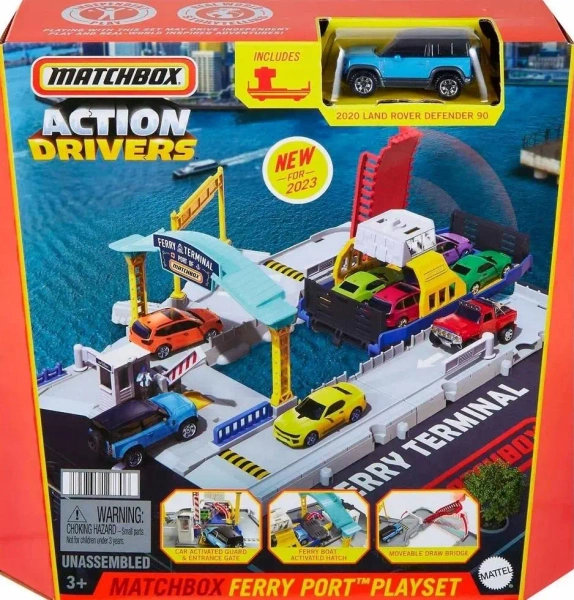 Gdy prom wtoczy się do doku, tylna rampa automatycznie się opuszcza, pozwalając wpuścić na pokład nawet 4 samochodziki. W zestawie jest 1 pojazd Matchbox Land Rover; dodatkowe pojazdy są sprzedawane oddzielnie.