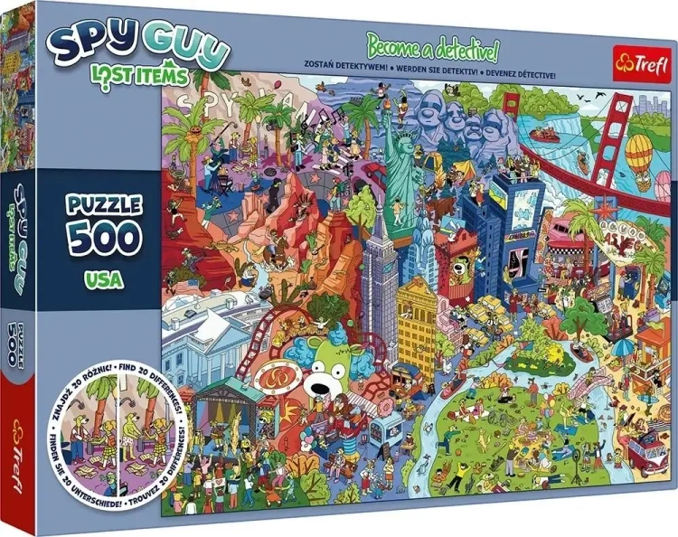 Zapraszamy do odkrycia nowego zestawu puzzli 500 Spy Guy Lost Items: USA, stworzonego przez KAZSTUDIO SA oraz Rodzinę Treflików z TREFL. Ten wyjątkowy produkt przeniesie Cię w fascynującą podróż po Stanach Zjednoczonych, pełną ukrytych przedmiotów i zagadek.
