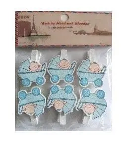 Te ozdobne klamerki z wzorami dla niemowląt są dostępne w wygodnym opakowaniu posiadającym dziurkę do zawieszania. W zestawie znajduje się 6 klamerek z ciekawymi elementami dekoracyjnymi.