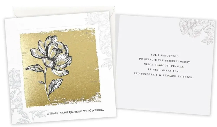 Prezentujemy kartkę z serii Quadro, idealną na wyrażenie kondolencji. Kartki te wyróżniają się nowoczesnym designem oraz prostą, elegancką formą. Wewnątrz znajduje się specjalnie przygotowany tekst, który doskonale oddaje uczucia w trudnych chwilach. Całość dopełnia koperta, zaprojektowana z dbałością o każdy detal, aby idealnie współgrała z kartką.