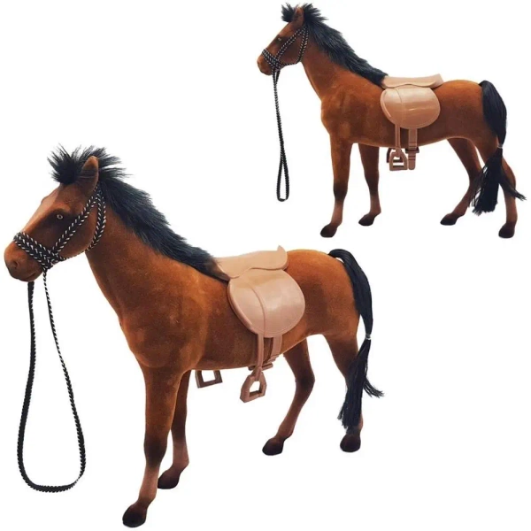Oferujemy pięknego konia w brązowym odcieniu, całkowicie pokrytego miękkim i przyjemnym w dotyku materiałem floku. Idealny jako prezent dla miłośników wyjątkowych dekoracji, zarówno dla dzieci, jak i dorosłych.