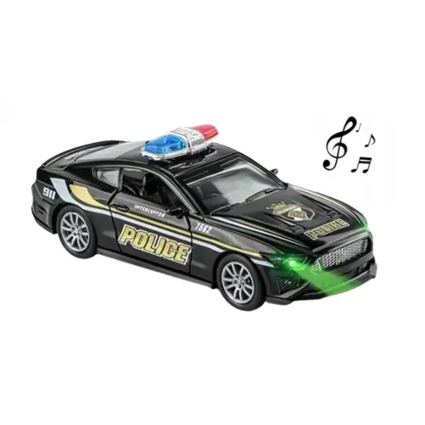 Metalowy samochód policyjny z efektami świetlnymi i dźwiękowymi