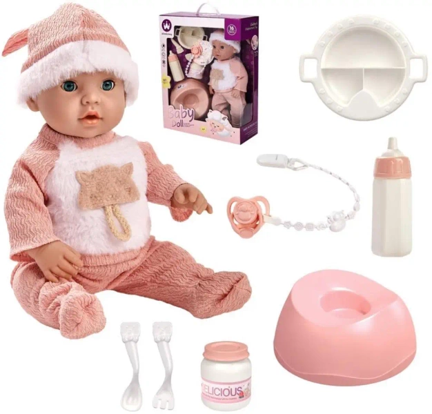 Lalka bobas z akcesoriami pakowana w pudełko.