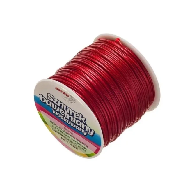 Sznurek bawełniany woskowany 25m czerwony - Brewis