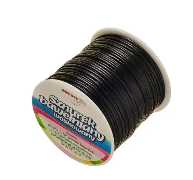 Sznurek bawełniany woskowany 25m czarny - Brewis