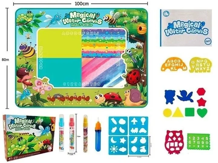 Interaktywna mata do zabawy - Kolorowanie wodnym pisakiem - Motyw owadów - Wielkość 100x80cm