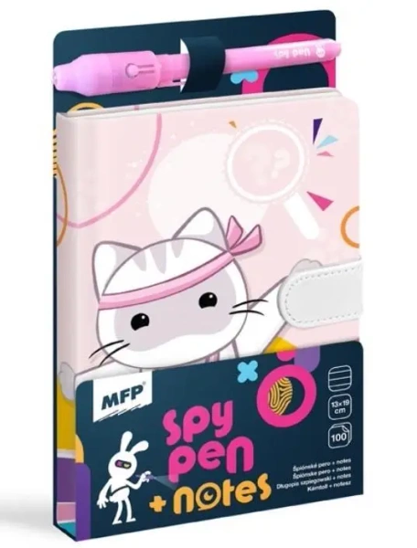 Prezentujemy notes w linie z zaokrąglonymi rogami oraz eleganckim nadrukiem. Zestaw zawiera długopis szpiegowski z niewidzialnym atramentem, który staje się widoczny po oświetleniu lampą UV. To idealne rozwiązanie do zapisywania tajnych informacji. Fioletowy długopis wyposażony jest w małą latarkę umożliwiającą czytanie ukrytego tekstu. Notes zamykany jest na magnes, co zapewnia wygodę i bezpieczeństwo użytkowania.