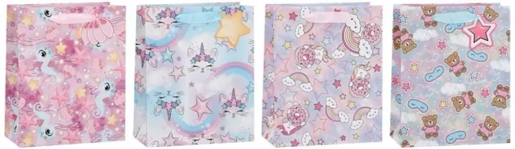 Nasza oferta zawiera atrakcyjne torebki prezentowe, w różnych wzorach, które wybierane są losowo. Cena dotyczy jednej sztuki.
