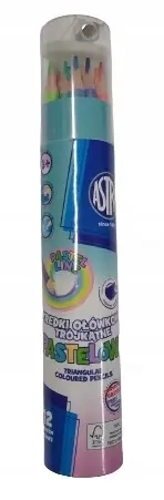 Przedstawiamy trójkątne kredki ołówkowe marki Astra, które dostępne są w pastelowych odcieniach. Każda tubka zawiera 12 kolorowych kredek, idealnych do tworzenia pięknych rysunków i ilustracji.