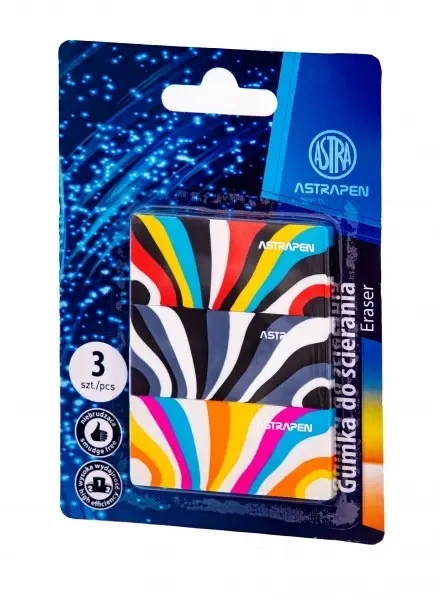 Gumka ołówkowa kolorowe paski Astrapen 3 szt. - ASTRA art-pap
