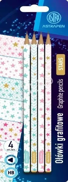 Ołówki grafitowe trójkątne HB Astrapen Stars 4 szt. - ASTRA art-pap