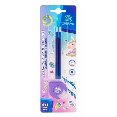 Wkłady wymazywalne niebieskie + gumka do długopisów i ołówków ASTRAPEN Oops! blister - ASTRA art-pap