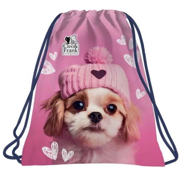 Kolorowy worek na obuwie Cleo i Frank z motywem psa to doskonała propozycja dla uczniów, którzy poszukują funkcjonalnego dodatku zarówno na szkolne treningi, jak i na wyjścia na basen.