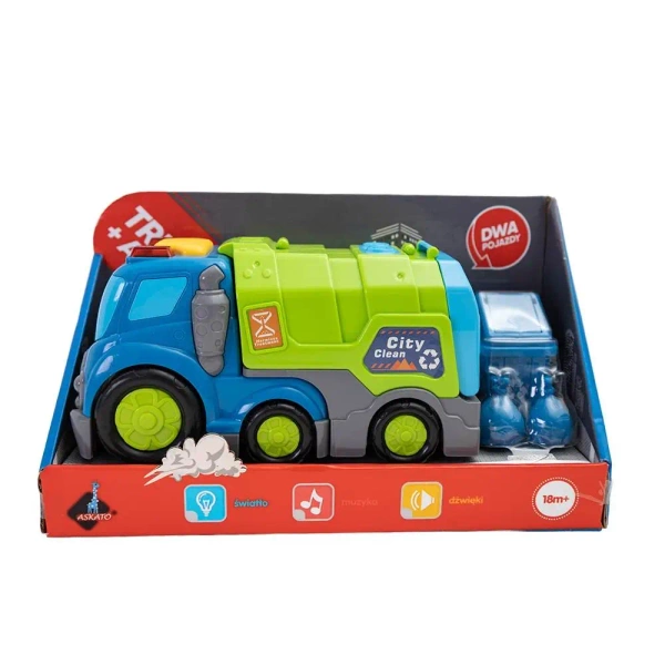 Zestaw 2w1 - Śmieciarka i pojemnik na śmieci - Askato