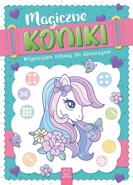 "Magiczne koniki. Aktywizujące zabawy dla dziewczynek" to zbiór łamigłówek oraz kolorowanek rozwijających wiele przydatnych umiejętności.