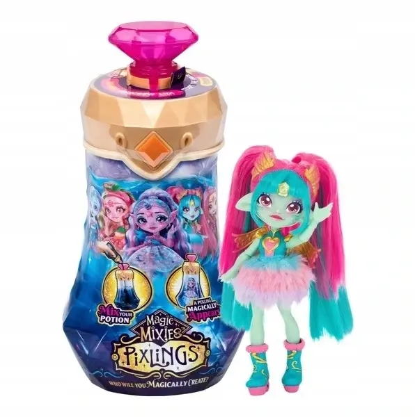 Stwórz magiczny eliksir i wyczaruj swoją własną laleczkę Pixlings od Magic Mixies. Zapewnij swojemu dziecku ekscytujący element zaskoczenia, dzięki któremu zabawa wzniesie się na zupełnie nowy poziom. W serii Pixlings znajduje się aż 5 laleczek, a do odkrycia każdej z nich potrzebne są inne składniki. Każda lalka ma 16 cm wysokości i 7 ruchomych punktów, dzięki itnieje możliwość ustawienia jej w różnych pozach oraz wspaniałe, długie włosy, które można czesać.