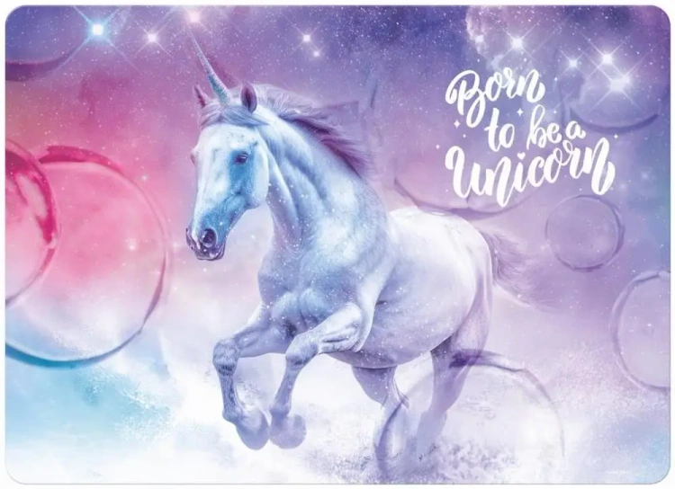 Odkryj uroczą podkładkę laminowaną z wizerunkiem magicznego jednorożca. Idealnie nadaje się do ochrony powierzchni biurka oraz dodaje czarującego wyglądu każdemu pomieszczeniu.