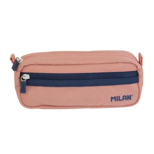 Wnętrze piórnika zdobi granatowa podszewka z siatkowym wzorem, przypominającym kształty ikonicznych gumek MILAN. Zewnętrzny materiał wykonany jest z lekkiej i wytrzymałej tkaniny Ripstop, która dzięki specjalnej technice tkania wzmacnianych nici w regularnych odstępach gwarantuje odporność na rozdarcia i wyjątkową trwałość.