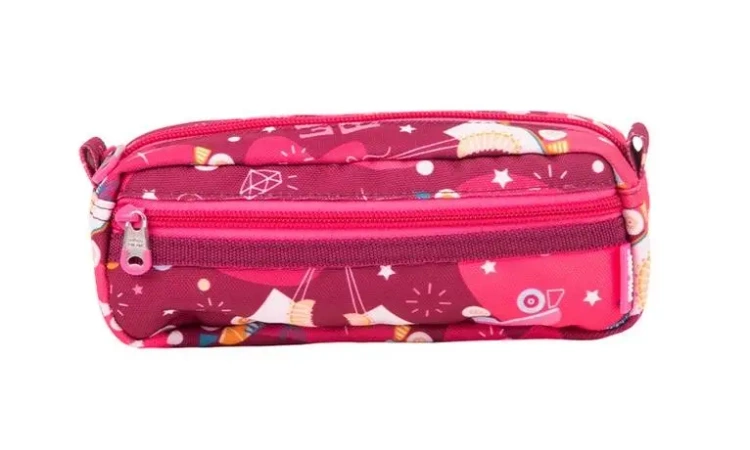 Odkryj wyjątkowy piórnik prostokątny z kolekcji ROLLER. Ten różowy piórnik przyciąga wzrok nadrukiem inspirowanym retro wrotkami. Zapewnia on wygodę dzięki swoim dwóm komorom zamykanym na suwak: posiada małą kieszeń z przodu oraz przestronną komorę główną.