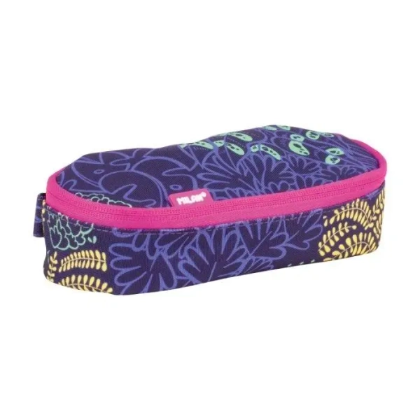 Barwy są tak jasne, jak świetliki: liliowy, fuksja, żółty i zielony, które kontrastują z ciemnoliliowym tłem. Piórnik posiada zamek błyskawiczny i detale w kolorze fuksji, co dodaje mu wyjątkowego uroku.