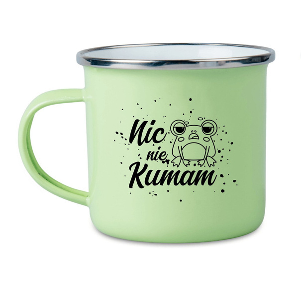Uważam, że ten kubek emaliowany z rysunkiem żaby i napisem "nic nie kumam", to zabawny i stylowy gadżet, który może być doskonałym dodatkiem do codziennego użytku lub świetnym prezentem dla osób lubiących humorystyczne akcenty.