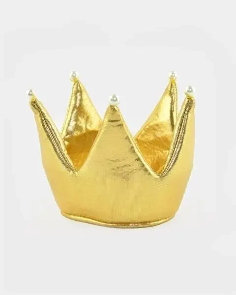 Niezastąpiona na balach karnawałowych czy też podczas zabawy z przyjaciółmi, złota korona dla Twojej małej księżniczki. Wykonana z najwyższą starannością, zwracającą uwagę na najdrobniejsze detale. Korona charakteryzuje się pięknym złotym satynowym materiałem, ozdobiona białymi perełkami. Dodatkowo, korona posiada wygodną, miękką gumkę, dzięki której będzie dobrze trzymała się na głowie.