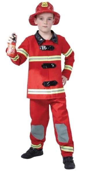 Ten strój strażaka, który składa się z kurtki, spodni oraz czapki, dostępny jest w rozmiarze S, co odpowiada wzrostowi 110-120 cm. Idealny dla małych miłośników przygód i odwagi, które symbolizuje straż pożarna.