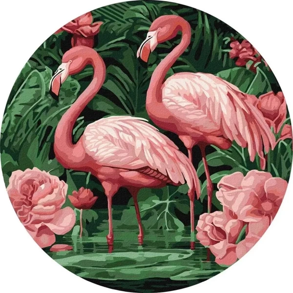 Malowanie po numerach okrągła rama - Flamingi w... - Ideyka