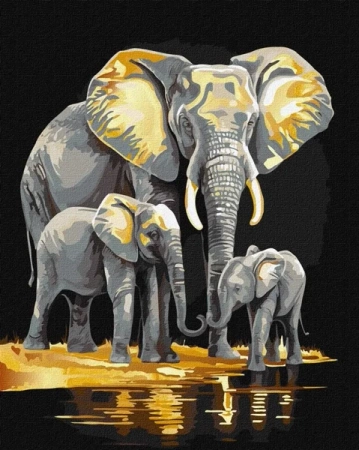 Fascynująca Przyjemność z Malowania po Numerach - Rodzina Słoni 40x50 cm