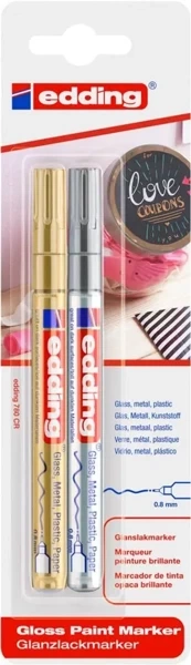 Marker olejowy połyskujący 0,8mm 2 kolory - Edding